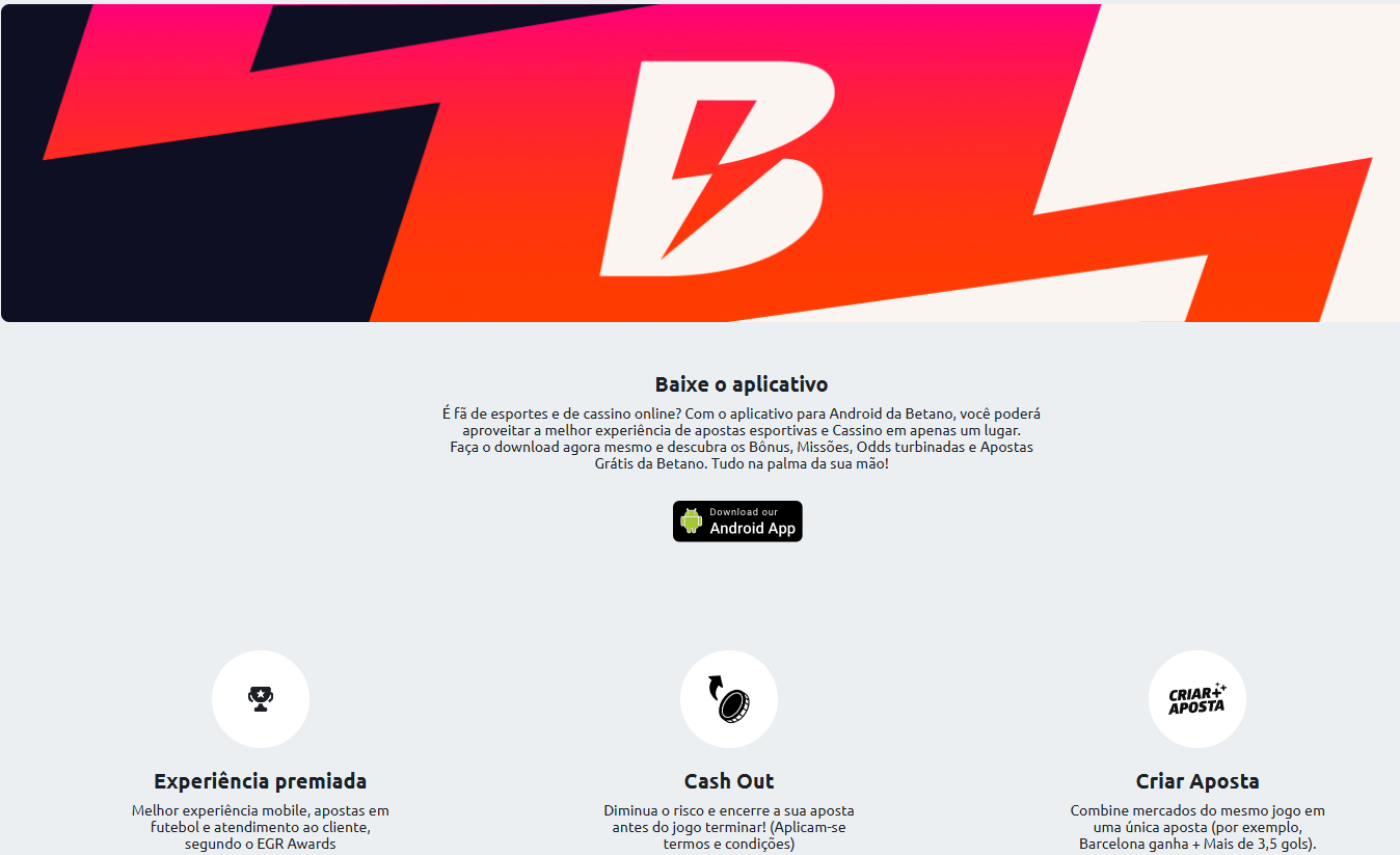 Faça o download da app Betano no site oficial (APK para Android ou App Store para iOS)